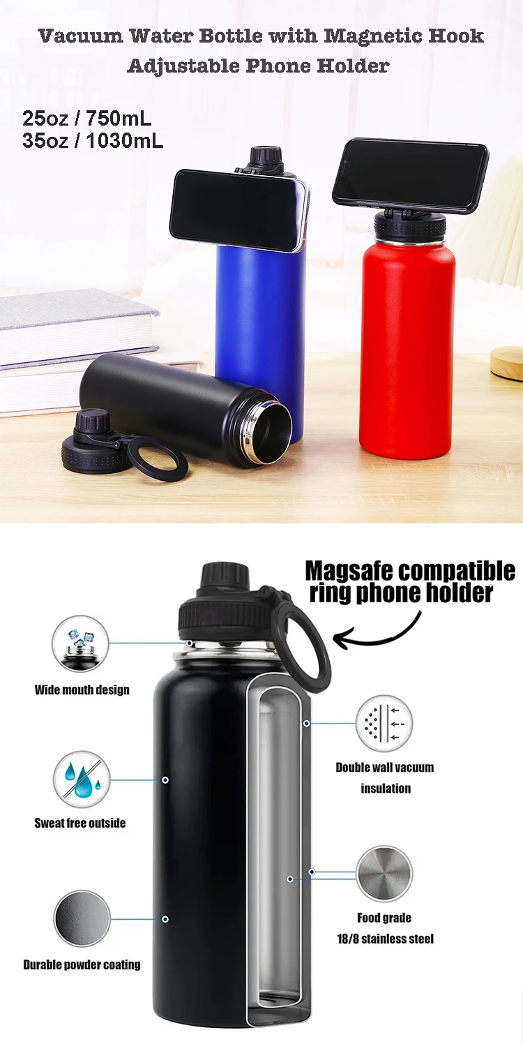 MagSafe 32oz 1000ML Insulated Bottle with Rotating Phone Holder Water Bottle Thermal Water Cup